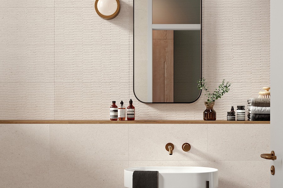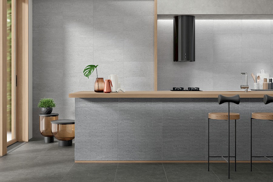 Himmeäpintainen Blunt jäljittelee tasalaatuista hiekkakiveä jossa on nähtävissä erikokoisia mineraalin rakeita, jotka tuovat lisää mielenkiintoa laatan kuviointiin.