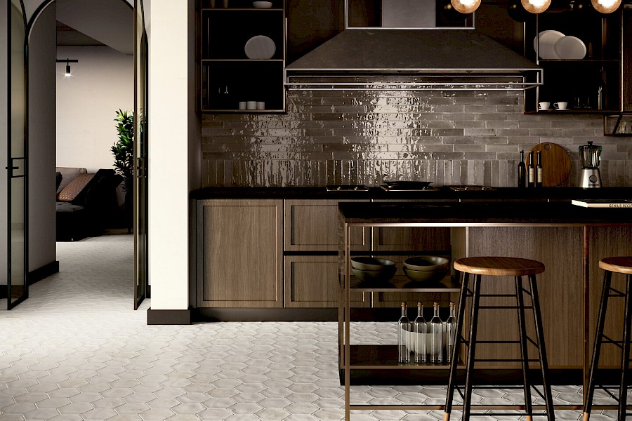 Hope seinälaatta yhdistää kiiltävän pinnan tuoman tyylikkyyden ja rustiikin pinnan luoman kodikkaan ja luonnonläheisen tunnelman.