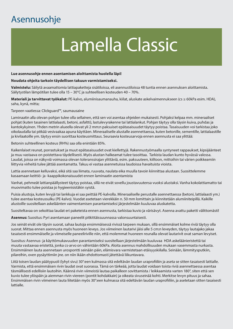 Lamella Classic laminaattimallistomme koostuu yhteensä kahdeksasta upeasta kuosista.