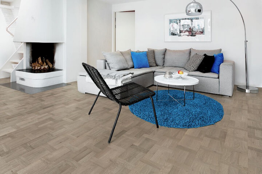Ihastuttava hollantilaiskuvioinen parketti. Ladontakuvio on valmiina pitkässä lukkopontillisessa laudassa, joten valmista lattiaa syntyy helposti ja nopeasti.