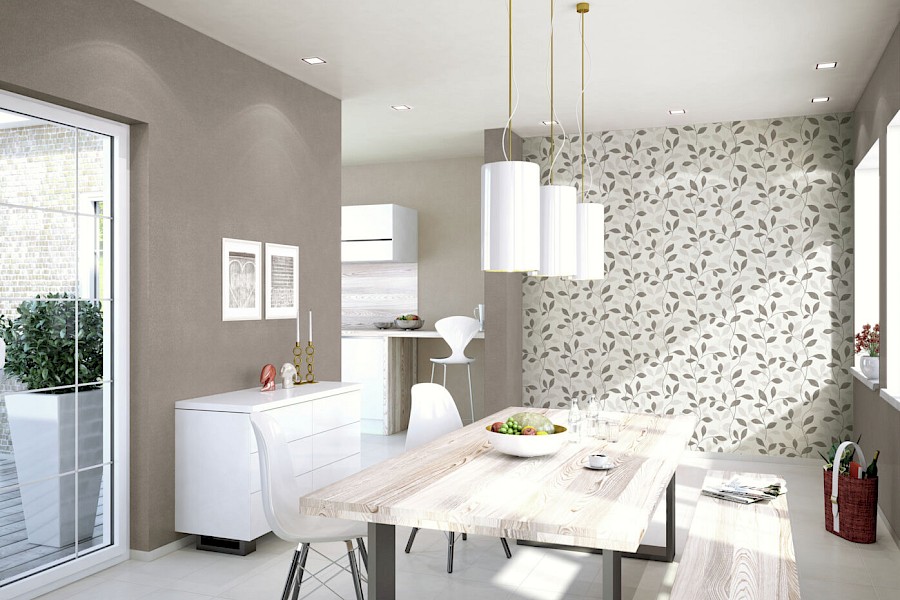 Rouheita tiilipintoja, monimuotoisia kukkakuoseja sekä kulmikasta geometrisuutta täydentää laaja yksiväristen kuosien valikoima.