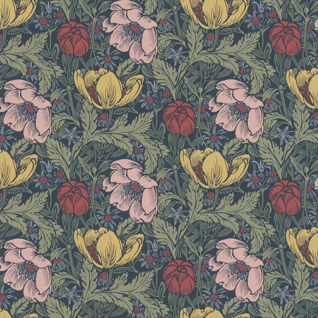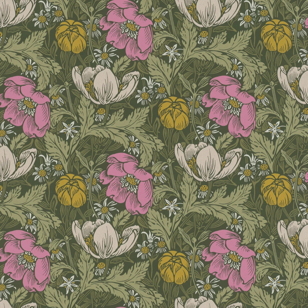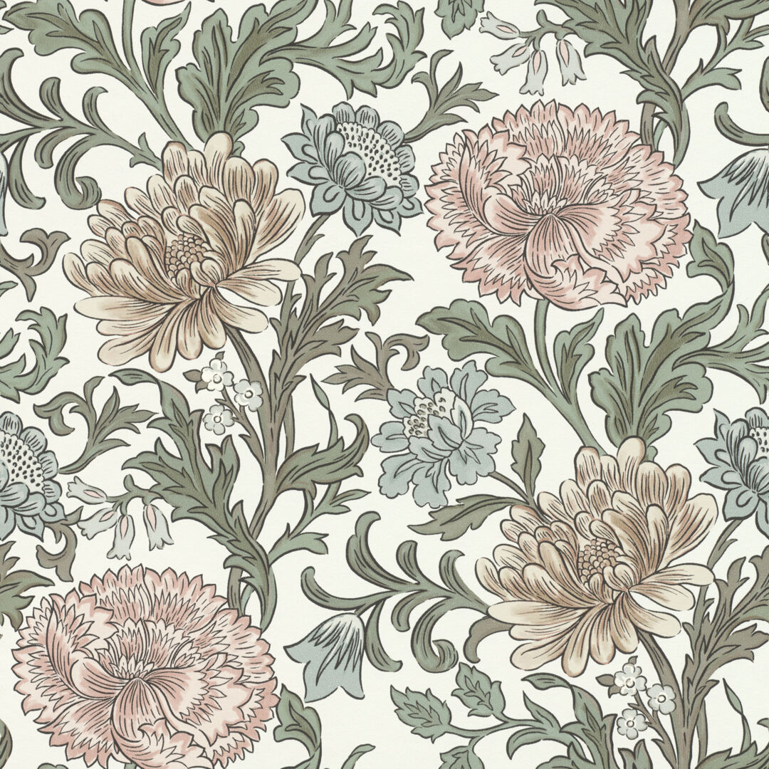 Hurmaavia kukkakuoseja löytyy herkistä lehtikuvioista näyttäviin runsaisiin kuvioihin. Mallistoa täydentää tyylikkäät artdeco-henkiset kuosit, joihin glamouria luo pinnan hentoinen kiilto. Näyttävät sisustuspaneelikuvat ovat todellisia taideteoksia itsessään.